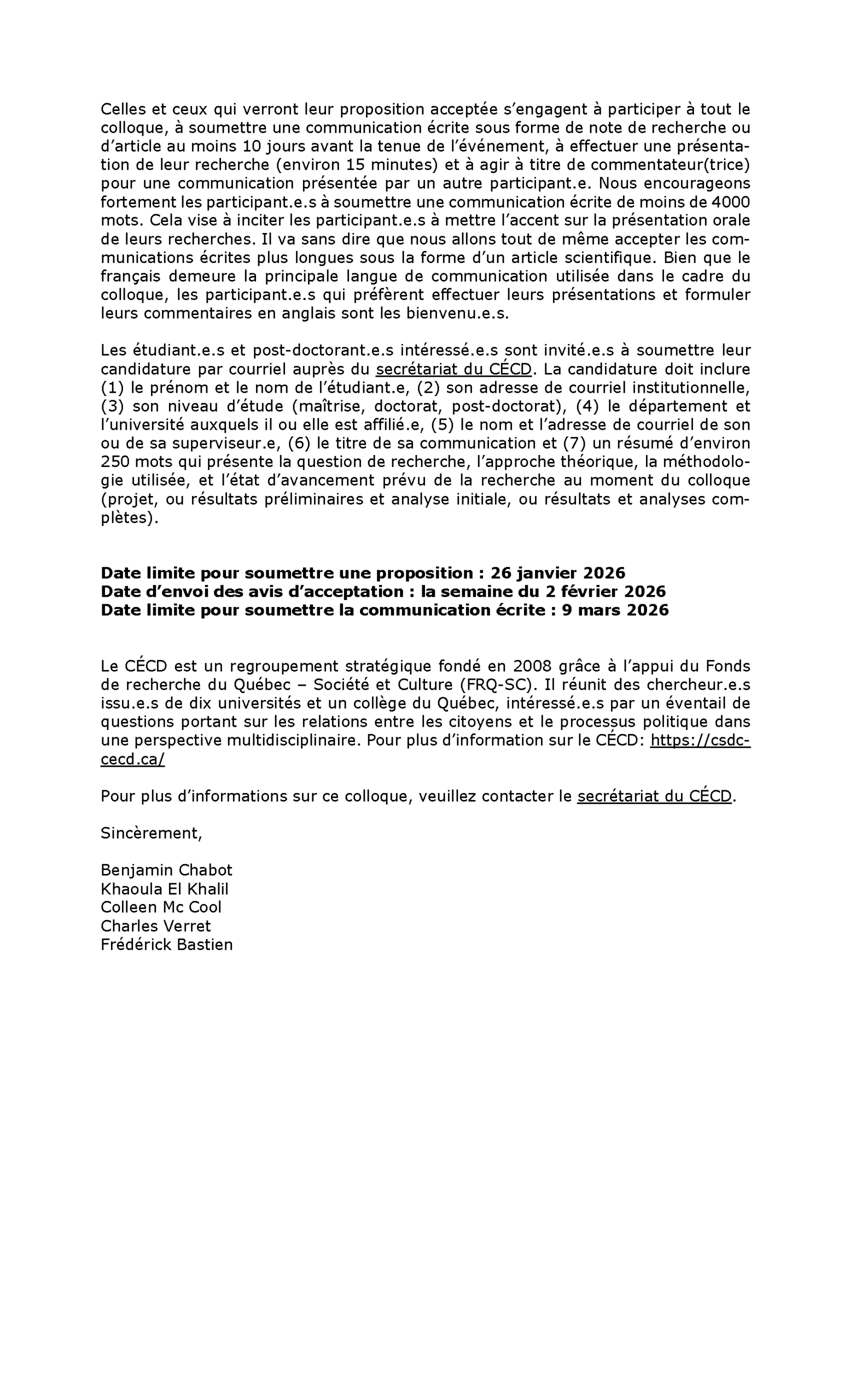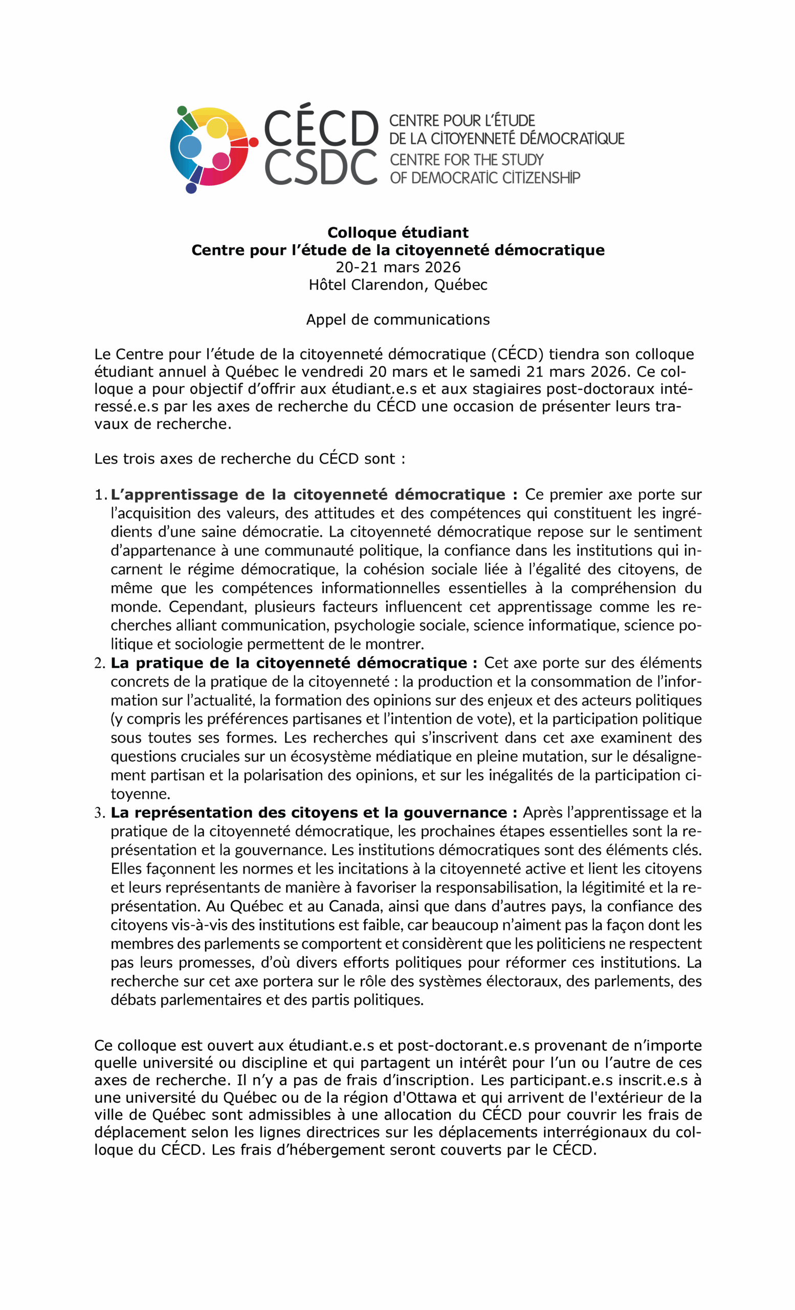 The Centre for the Study of Democratic Citizenship is funded by the Fonds de recherche du Québec – Société et culture (FRQSC).